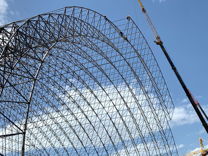 (2)网架加工前应对现场尺寸进行复测,确认无误后方可进行加工、安装;网架制作、运输、安装应遵守《空间网格结构技术规程》JGJ7-2010、《钢网架浙江螺栓球节点》JG/T 10-2009、《钢网架浙江螺栓球节点用高强度螺栓》 GB/T 16939-2016、《浙江钢结构浙江工程浙江施工规范》 GB50755-2012、《浙江钢结构浙江工程施工质量验收标准》 GB50205-2020。